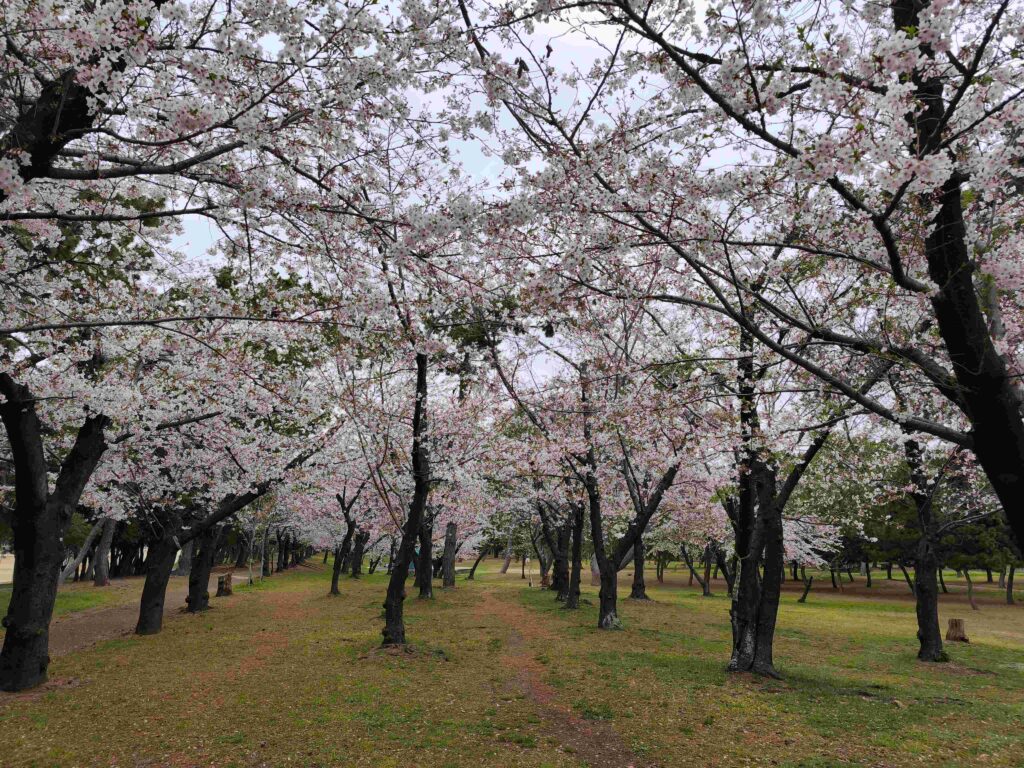 近くの公園には数百本の桜が植えられており、この季節にはバーベキューしたり、椅子やシートでゆったりしたりする人がたくさんいます。